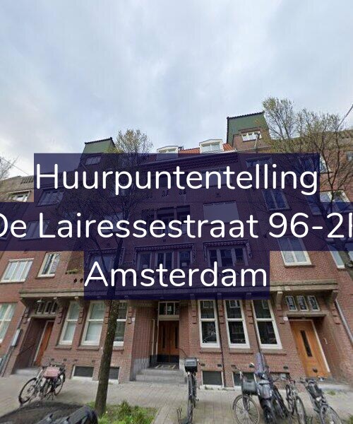 Deze woning aan de De Lairessestraat 96-2R in Amsterdam heeft volgens onze rapportage minimaal 349 huurpunten [1] per 1 januari 2025 en valt daarmee in de vrije sector en heeft een gemiddelde markt huurprijs van € 1.185.