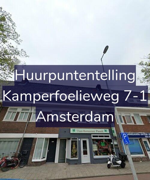 Deze woning aan de Kamperfoelieweg 7-1 in Amsterdam heeft volgens onze rapportage tussen de 140 en 156 huurpunten [1] per 1 januari 2025 en valt daarmee in het gereguleerde segment en heeft een huurprijs tot € 1.035,37 [2].
