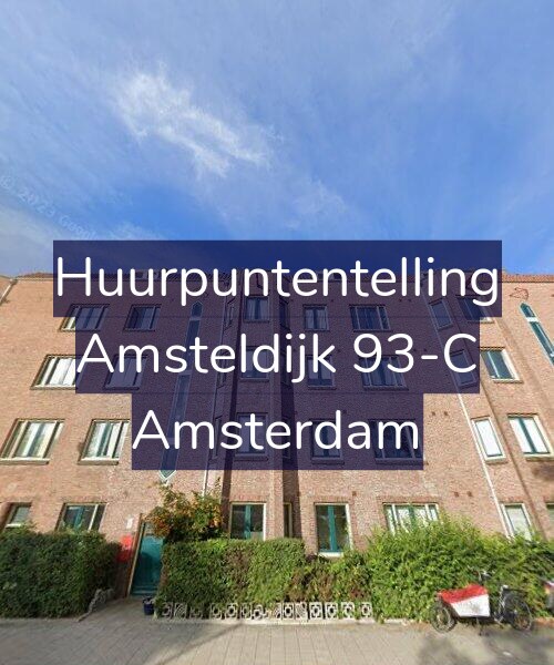 Hieronder de minimale WWS puntentelling voor Amsteldijk 93-C uitgesplitst per categorie: gebruiksoppervlakte vertrekken, aantal verwarmde vertrekken, keuken en sanitair kwaliteit, buitenruimte, WOZ-waarde en energielabel.