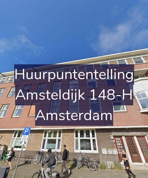 Hieronder de minimale WWS puntentelling voor Amsteldijk 148-H uitgesplitst per categorie: gebruiksoppervlakte vertrekken, aantal verwarmde vertrekken, keuken en sanitair kwaliteit, buitenruimte, WOZ-waarde en energielabel.