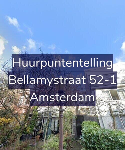 Deze woning aan de Bellamystraat 52-1 in Amsterdam heeft volgens onze rapportage tussen de 156 en 169 huurpunten [1] per 1 januari 2025 en valt daarmee in het gereguleerde segment en heeft een huurprijs tot € 1.072,25 [2].