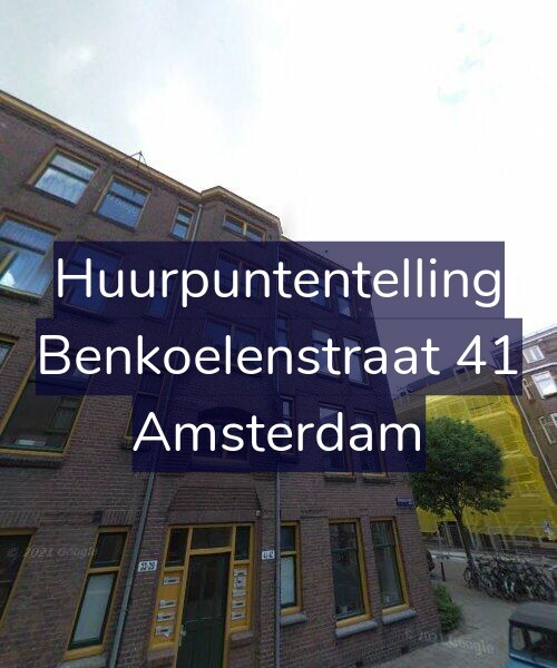 Deze woning aan de Benkoelenstraat 41 in Amsterdam heeft volgens onze rapportage tussen de 146 en 156 huurpunten [1] per 1 januari 2025 en valt daarmee in het gereguleerde segment en heeft een huurprijs tot € 1.331,19 [2].