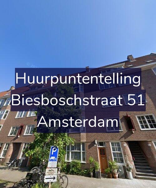 Deze woning aan de Biesboschstraat 51 in Amsterdam heeft volgens onze rapportage tussen de 178 en 186 huurpunten [1] per 1 januari 2025 en valt daarmee in het gereguleerde segment en heeft een huurprijs tot € 1.244,06 [2].