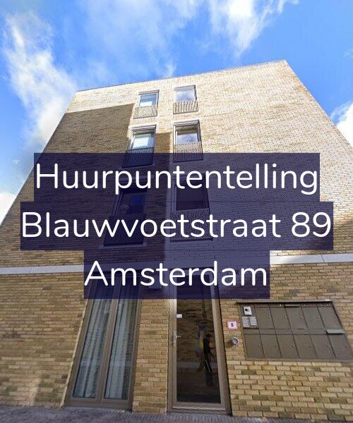 Deze woning aan de Blauwvoetstraat 89 in Amsterdam heeft volgens onze rapportage minimaal 262 huurpunten [1] per 1 januari 2025 en valt daarmee in de vrije sector en heeft een gemiddelde markt huurprijs van € 1.185.