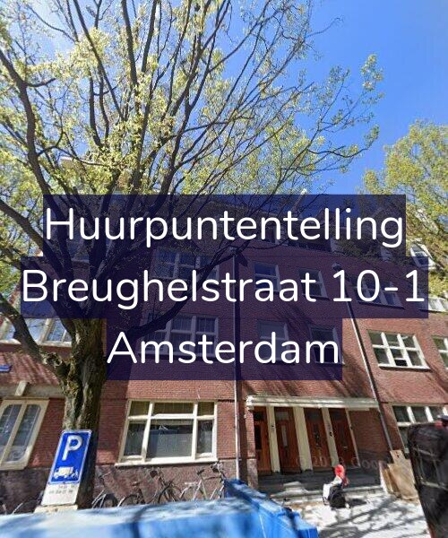 Hieronder de minimale WWS puntentelling voor Breughelstraat 10-1 uitgesplitst per categorie: gebruiksoppervlakte vertrekken, aantal verwarmde vertrekken, keuken en sanitair kwaliteit, buitenruimte, WOZ-waarde en energielabel.