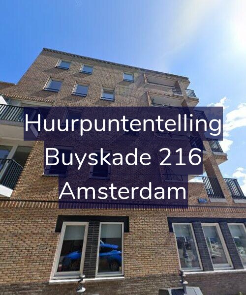 Deze woning aan de Buyskade 216 in Amsterdam heeft volgens onze rapportage minimaal 210 huurpunten [1] per 1 januari 2025 en valt daarmee in de vrije sector en heeft een gemiddelde markt huurprijs van € 1.185. Deze woning is een appartement met energielabel A++. De oppervlakte volgens de BAG is 72m2.