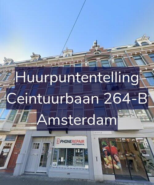 Deze woning aan de Ceintuurbaan 264-B in Amsterdam heeft volgens onze rapportage tussen de 186 en 220 huurpunten [1] per 1 januari 2025 en is mogelijk gereguleerd afhankelijk van de kwaliteit van de woning. De te verwachtte gereguleerd maximale huurprijs is € 1.184,82 tot een markt huurprijs vanaf € 1.185 [2].
