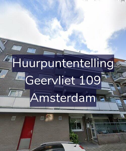 Deze woning aan de Geervliet 109 in Amsterdam heeft volgens onze rapportage tussen de 178 en 186 huurpunten [1] per 1 januari 2025 en valt daarmee in het gereguleerde segment en heeft een  huurprijs tot € 1.184,82 [2].