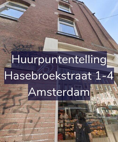 Deze woning aan de Hasebroekstraat 1-4 in Amsterdam heeft volgens onze rapportage tussen de 137 en 180 huurpunten [1] per 1 januari 2025 en valt daarmee in het gereguleerde segment en heeft een huurprijs tot € 1.145,04 [2].