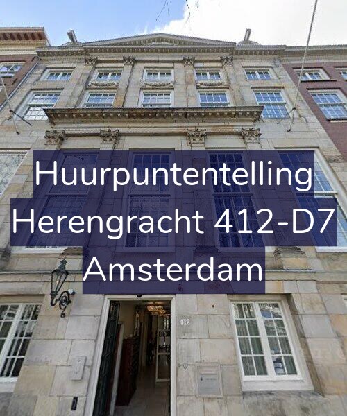 Deze woning aan de Herengracht 412-D7 in Amsterdam heeft volgens onze rapportage tussen de 133 en 146 huurpunten [1] per 1 januari 2025 en valt daarmee in het gereguleerde segment en heeft een  huurprijs tot € 1.241,82 [2].