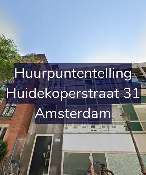 Deze woning aan de Huidekoperstraat 31 in Amsterdam heeft volgens onze rapportage tussen de 146 en 159 huurpunten [1] per 1 januari 2025 en valt daarmee in het gereguleerde segment en heeft een huurprijs tot € 1.056,31 [2].