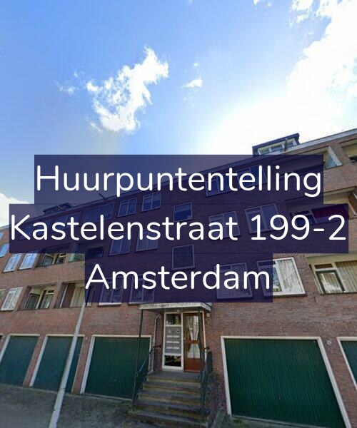 Deze woning aan de Kastelenstraat 199-2 in Amsterdam heeft volgens onze rapportage tussen de 171 en 184 huurpunten [1] per 1 januari 2025 en valt daarmee in het gereguleerde segment en heeft een huurprijs tot € 1.171,54 [2]. Deze woning is een appartement met energielabel C. De oppervlakte volgens de BAG is 75m2.