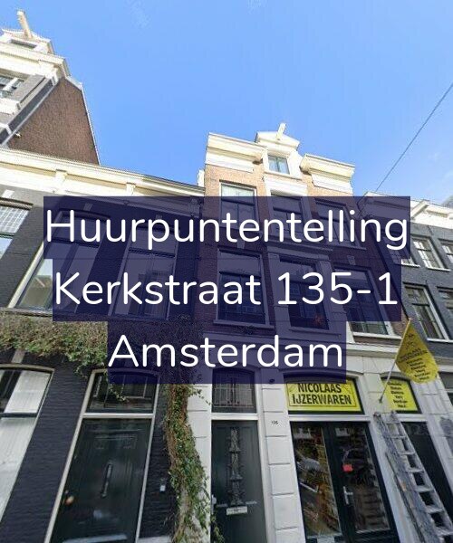 Deze woning aan de Kerkstraat 135-1 in Amsterdam heeft volgens onze rapportage minimaal 194 huurpunten [1] per 1 januari 2025 en valt daarmee in de vrije sector en heeft een gemiddelde markt huurprijs van € 1.185. Deze woning is een flatwoning met energielabel A.  De oppervlakte volgens de BAG is 71m2.