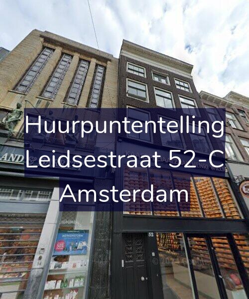 Deze woning aan de Leidsestraat 52-C in Amsterdam heeft volgens onze rapportage 186 huurpunten [1] per 1 januari 2025 en valt daarmee in het middenhuursegment en heeft een  huurprijs tot € 1.599,51 [2]. Deze woning is een flatwoning met energielabel E.  De oppervlakte volgens de BAG is 81m2.