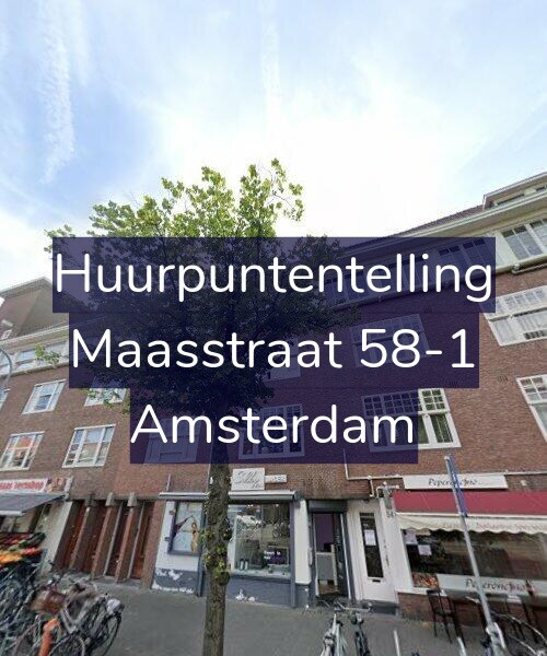 Deze woning aan de Maasstraat 58-1 in Amsterdam heeft volgens onze rapportage tussen de 157 en 170 huurpunten [1] per 1 januari 2025 en valt daarmee in het gereguleerde segment en heeft een huurprijs tot € 1.132,79 [2].