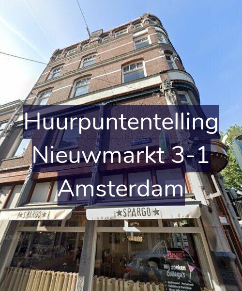 Deze woning aan de Nieuwmarkt 3-1 in Amsterdam heeft volgens onze rapportage tussen de 156 en 169 huurpunten [1] per 1 januari 2025 en valt daarmee in het gereguleerde segment en heeft een huurprijs tot € 1.125,86 [2].