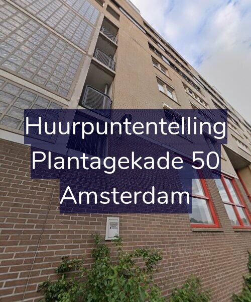Hieronder de minimale WWS puntentelling voor Plantagekade 50 uitgesplitst per categorie: gebruiksoppervlakte vertrekken, aantal verwarmde vertrekken, keuken en sanitair kwaliteit, buitenruimte, WOZ-waarde en energielabel.