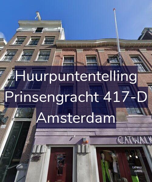 Deze woning aan de Prinsengracht 417-D in Amsterdam heeft volgens onze rapportage tussen de 186 en 235 huurpunten [1] per 1 januari 2025 en is mogelijk gereguleerd afhankelijk van de kwaliteit van de woning. De te verwachtte gereguleerd maximale huurprijs is € 1.244,06 tot een markt huurprijs vanaf € 1.185 [2].