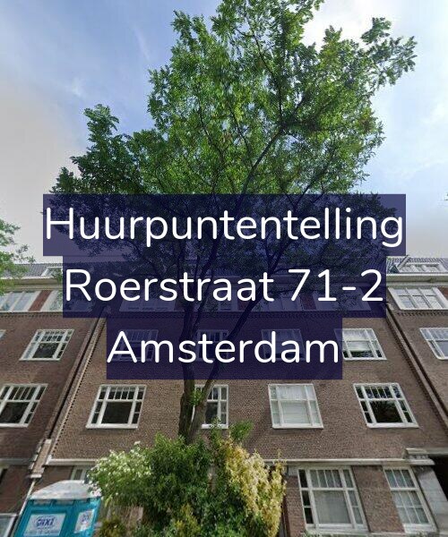Deze woning aan de Roerstraat 71-2 in Amsterdam heeft volgens onze rapportage tussen de 166 en 176 huurpunten [1] per 1 januari 2025 en valt daarmee in het gereguleerde segment en heeft een huurprijs tot € 1.174,50 [2]. Deze woning is een flatwoning met energielabel G. De oppervlakte volgens de BAG is 83m2.