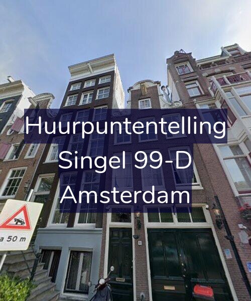 Deze woning aan de Singel 99-D in Amsterdam heeft volgens onze rapportage minimaal 223 huurpunten [1] per 1 januari 2025 en valt daarmee in de vrije sector en heeft een gemiddelde markt huurprijs van € 1.185.
