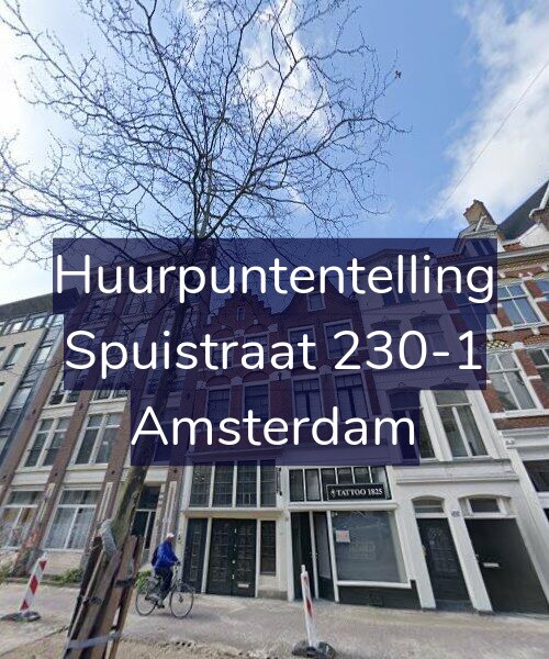 Voor deze woning aan de Spuistraat 230-1 hebben wij een puntentelling rapportage gemaakt die een indicatie van de huurpijs aangeeft volgens het huidige woningwaarderingsstelsel (WWS) met middenhuur huurprijsregulering.