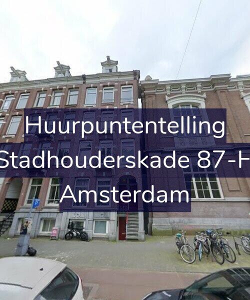 Deze woning aan de Stadhouderskade 87-H in Amsterdam heeft volgens onze rapportage tussen de 114 en 120 huurpunten [1] per 1 januari 2025 en valt daarmee in het gereguleerde segment en heeft een huurprijs tot € 747,65 [2].
