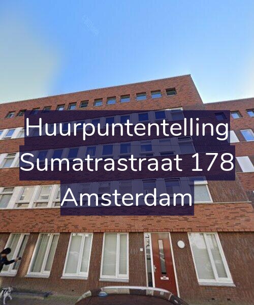 Deze woning aan de Sumatrastraat 178 in Amsterdam heeft volgens onze rapportage minimaal 208 huurpunten [1] per 1 januari 2025 en valt daarmee in de vrije sector en heeft een gemiddelde markt huurprijs van € 1.185. Deze woning is een flatwoning met energielabel A. De oppervlakte volgens de BAG is 72m2.