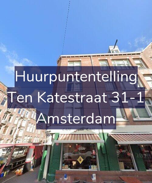 Deze woning aan de Ten Katestraat 31-1 in Amsterdam heeft volgens onze rapportage tussen de 153 en 166 huurpunten [1] per 1 januari 2025 en valt daarmee in het gereguleerde segment en heeft een huurprijs tot € 1.052,35 [2]. Deze woning is een flatwoning met energielabel C. De oppervlakte volgens de BAG is 44m2.