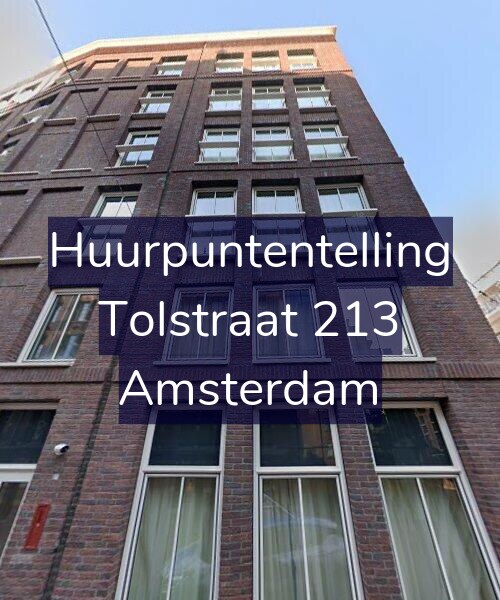 Deze woning aan de Tolstraat 213 in Amsterdam heeft volgens onze rapportage minimaal 224 huurpunten [1] per 1 januari 2025 en valt daarmee in de vrije sector en heeft een gemiddelde markt huurprijs van € 1.185.