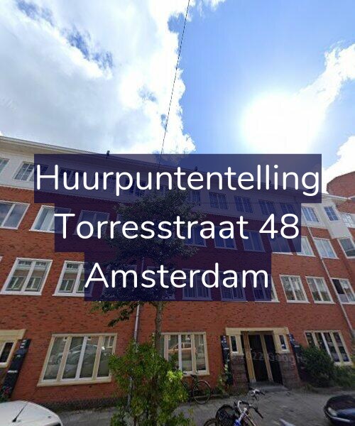 Deze woning aan de Torresstraat 48 in Amsterdam heeft volgens onze rapportage tussen de 166 en 179 huurpunten [1] per 1 januari 2025 en valt daarmee in het gereguleerde segment en heeft een huurprijs tot € 1.138,45 [2]. Deze woning is een flatwoning met energielabel A. De oppervlakte volgens de BAG is 48m2.