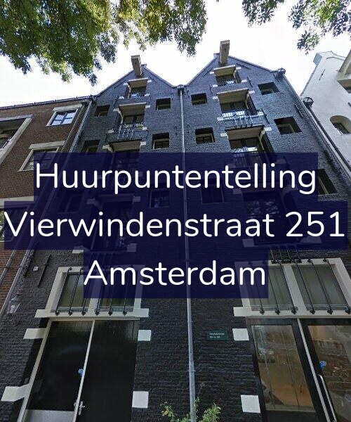 Deze woning aan de Vierwindenstraat 251 in Amsterdam heeft volgens onze rapportage 186 huurpunten [1] per 1 januari 2025 en valt daarmee in het middenhuursegment en heeft een  huurprijs tot € 1.599,51 [2].