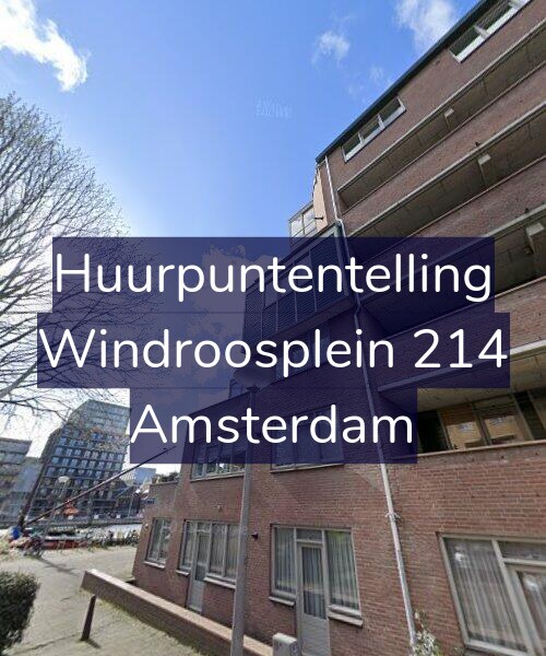 Deze woning aan de Windroosplein 214 in Amsterdam heeft volgens onze rapportage tussen de 146 en 163 huurpunten [1] per 1 januari 2025 en valt daarmee in het gereguleerde segment en heeft een huurprijs tot € 1.032,45 [2].