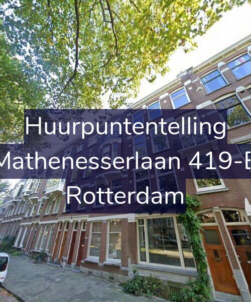 Deze woning aan de Mathenesserlaan 419-B in Rotterdam heeft volgens onze rapportage minimaal 238 huurpunten [1] per 1 januari 2025 en valt daarmee in de vrije sector en heeft een gemiddelde markt huurprijs van € 1.185.